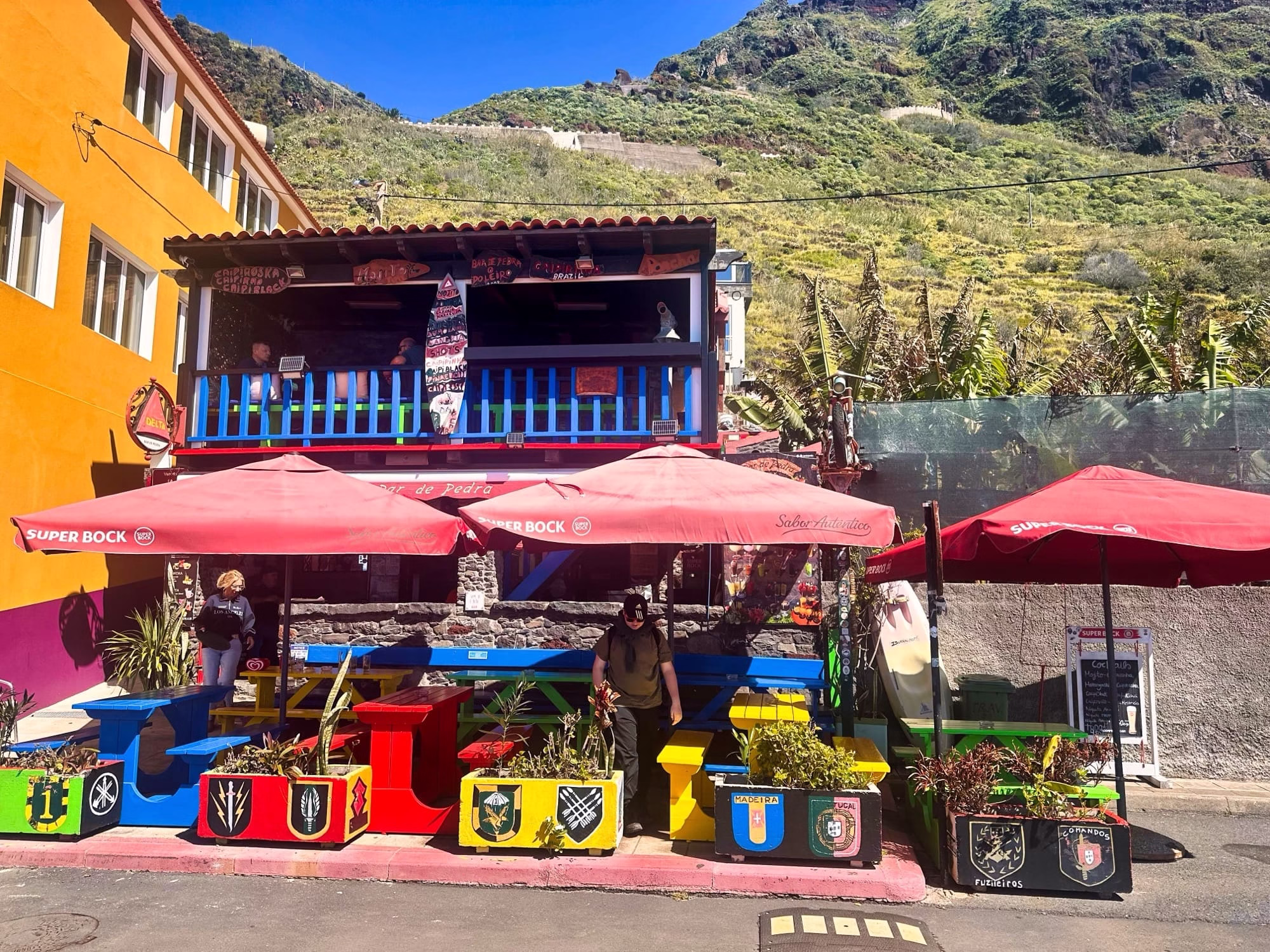 Dolů se jde vždycky snadněji, takže si po cestě můžete v klidu užívat scenérie. V půlce sestupu najdete na mapě označenou vyhlídku, která rozhodně stojí za zastávku. Doporučuji si na ni zaskočit – je to jen drobná odbočka a 2 minuty navíc. Po sestupu, který není nijak náročný (cesta je hodně klikatá, díky čemuž není sestup tak prudký), na vás čeká můj oblíbený, trochu motorkářský Bar de Pedra o Poleiro. Doporučuji se v něm zastavit a dát si něco dobrého.